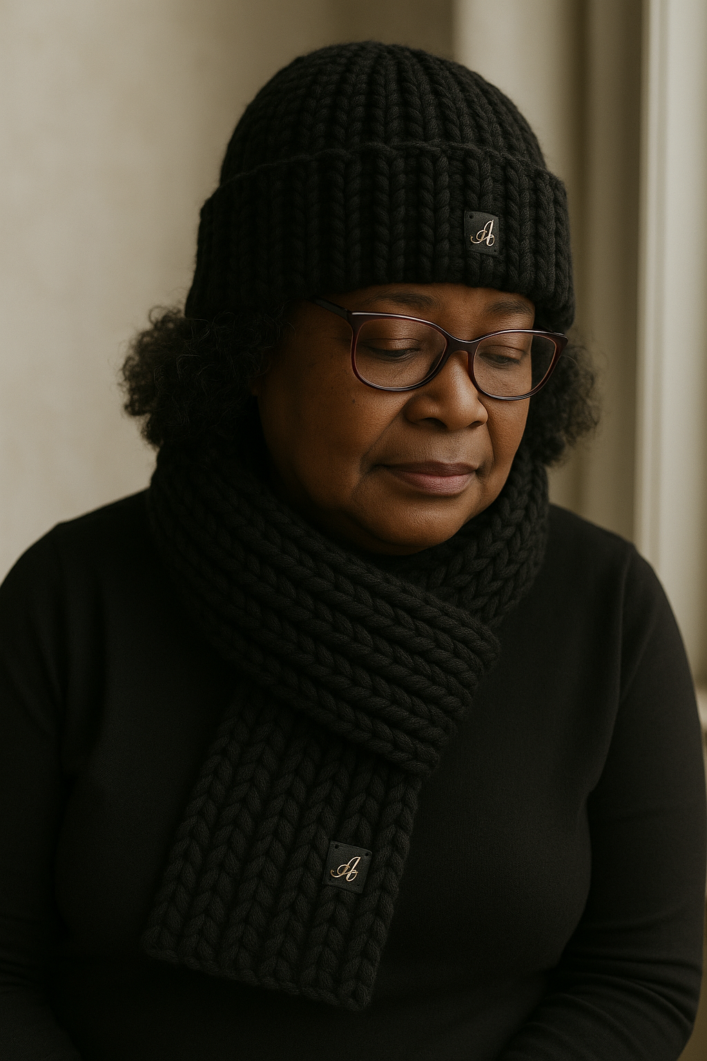 Each Admay piece — whether a beanie, scarf, or matching set — is hand-crocheted with care, one stitch at a time. Our Dusty Rose, Charcoal Gray, Classic Black, Navy Blue, Sage Mist, and Off-White tones are chosen not just for beauty, but for balance — colors that bring calm, warmth, and grace into everyday life.